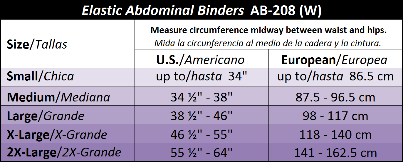 GABRIALLA Style AB-208(W) Women’s Breathable Abdominal Binder (8” wide)