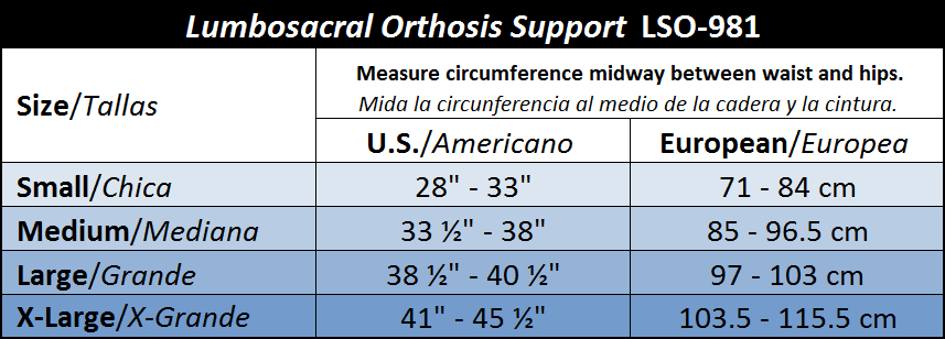 Chair back | HCPCS : L0637 OR L0650The ITA-MED Lumbo-Sacral Orthosis support is an excellent bracing option for conservative back care. This highly effective Lumbo-Sacral Orthosis is recommended by Doctors for people recovering from serious back injuries and surgical procedures, to reduce lordosis through general abdominal compression while providing back stability. The LSO-981 Lumbo-Sacral Orthosis is not only extremely effective, but also more comfortable to wear than competing products. Our award-winning, high-quality back supports represent a good investment in your comfort and health.